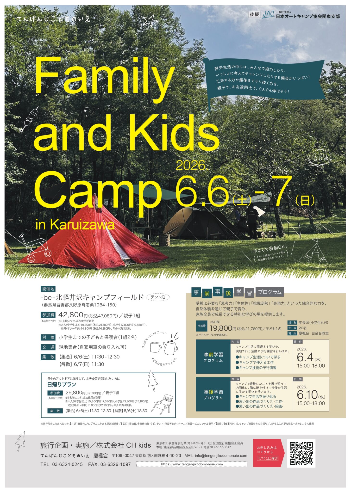 <宿泊満席(キャンセル待受付中)/ 日帰り残席有>【イベント案内】ファミリー&キッズキャンプin軽井沢(2026/6/6-7実施)