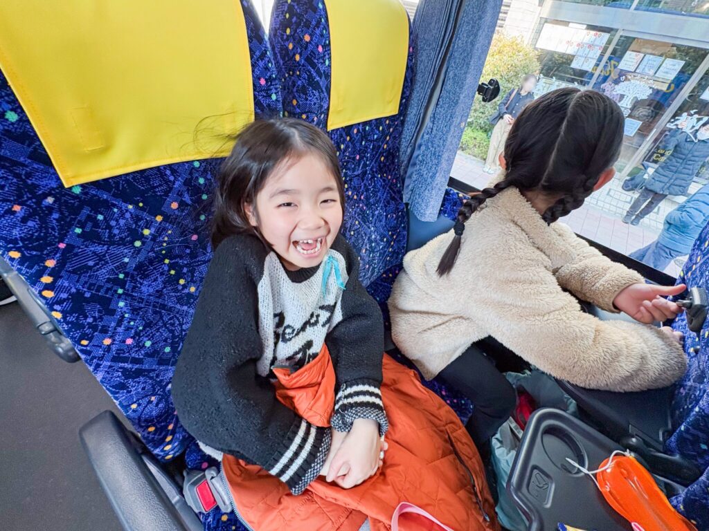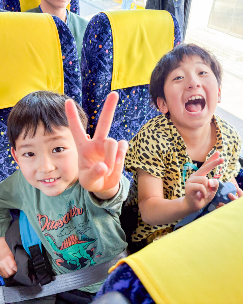 初日となったこの日、子どもたちは朝7時50分に慶楓会白金台教室に集合しました。きょろきょろと周りを見渡して少し緊張した様子の子ども達もいましたが、以前のキャンプで一緒だったお友達を見つけるとすぐにお話しに花を咲かせていました。全員でてんげんじこどものいえ貸し切りのバスに乗車し、車内ではDVDを観たり、隣のお友達と楽しく会話したりしながら、目的地である宿泊先「サンヴィレッジ苗場」へ向かいます。