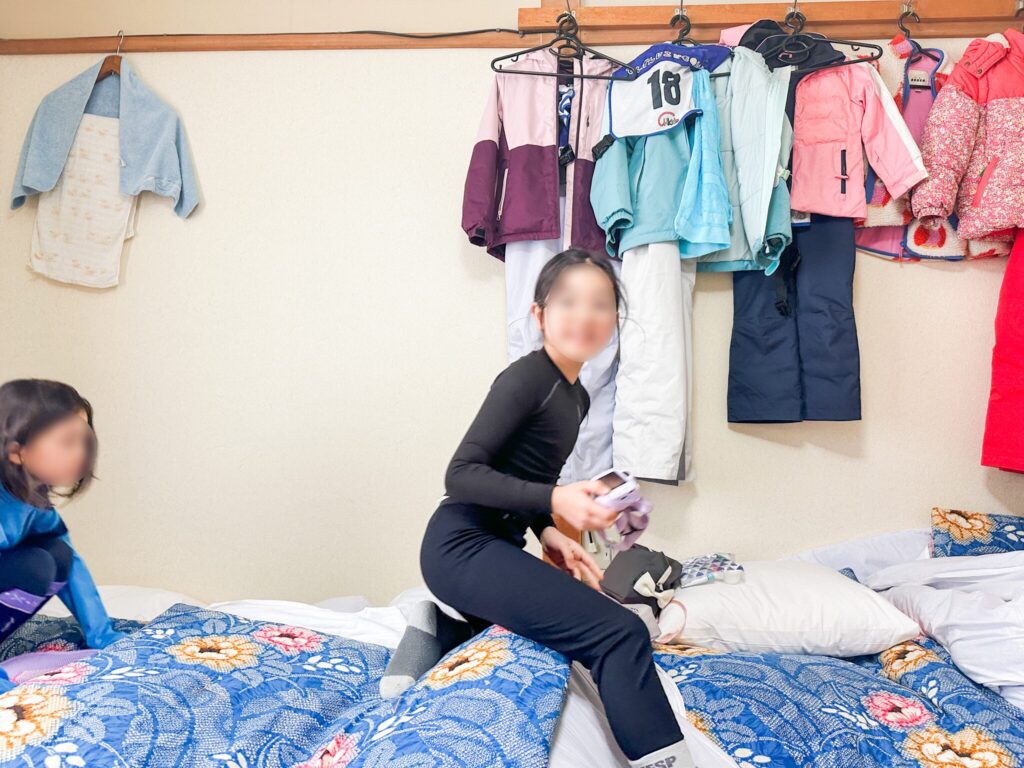 2日目の朝、朝陽と共に子ども達が目を覚まします。今日のレッスンが待ち遠しい様子で、起床するとすぐに自分たちで布団を綺麗に畳み、着替えや荷物の整理整頓を始め、スキーの準備を進めます。