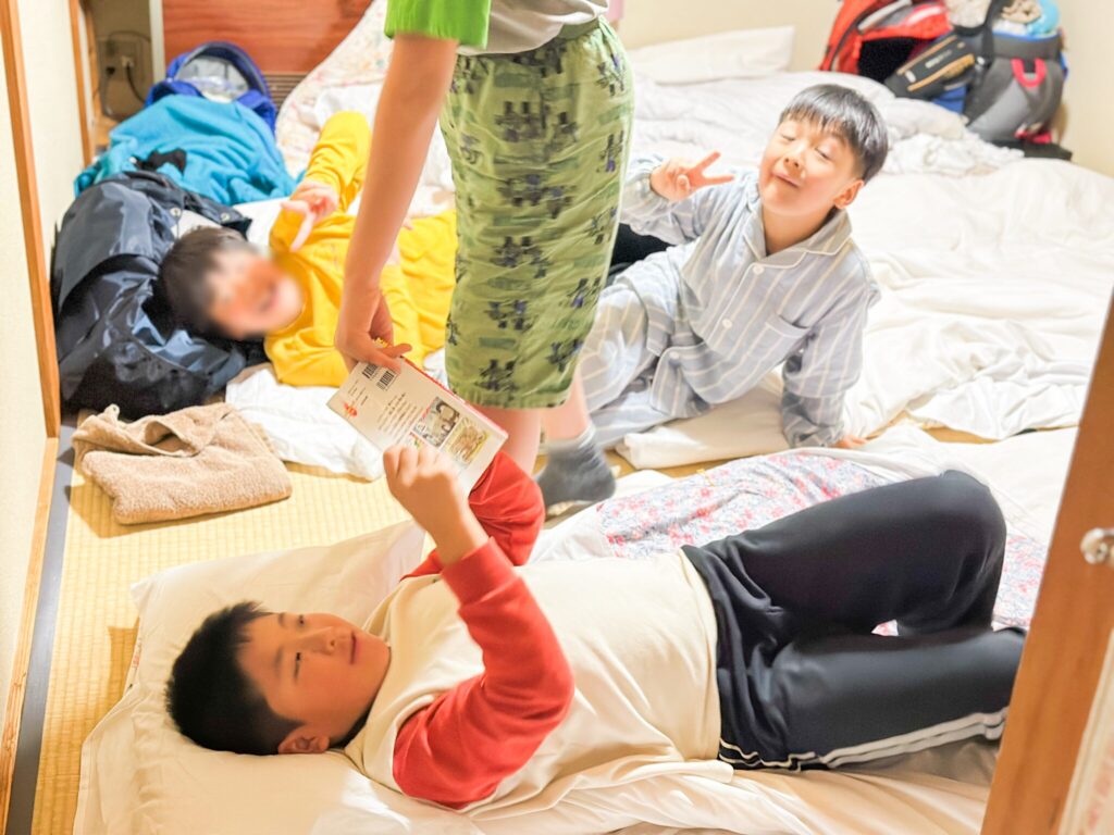 体育館で思う存分体を動かし、宿でゆっくりと自由時間を過ごす様子は次のページへ