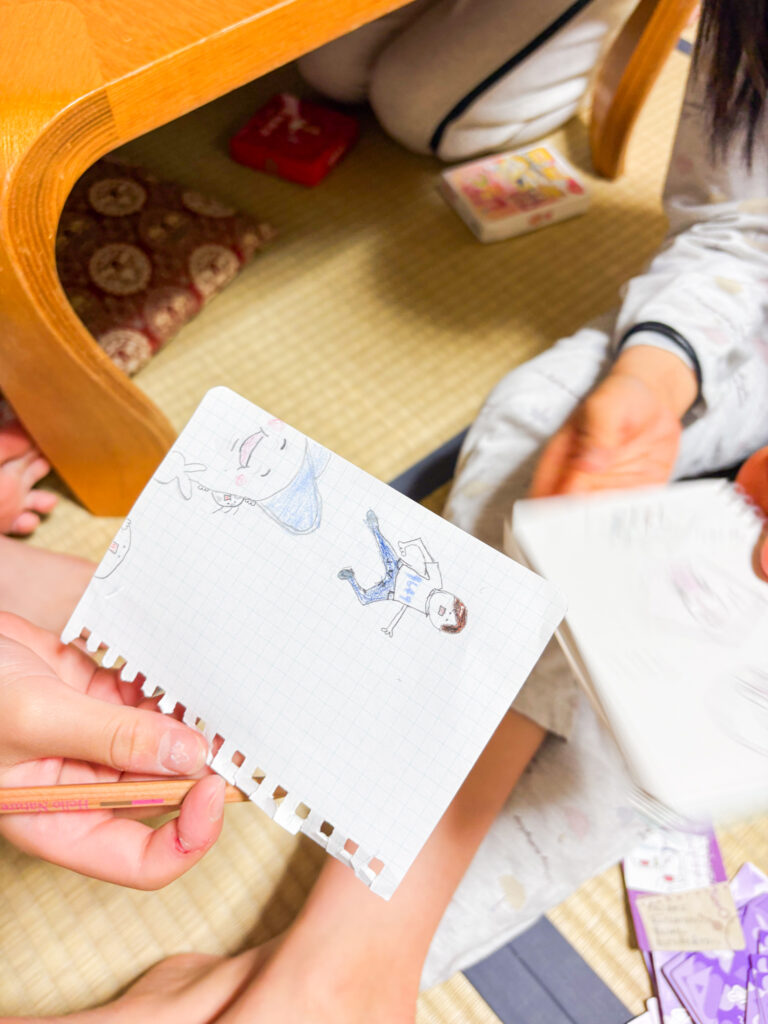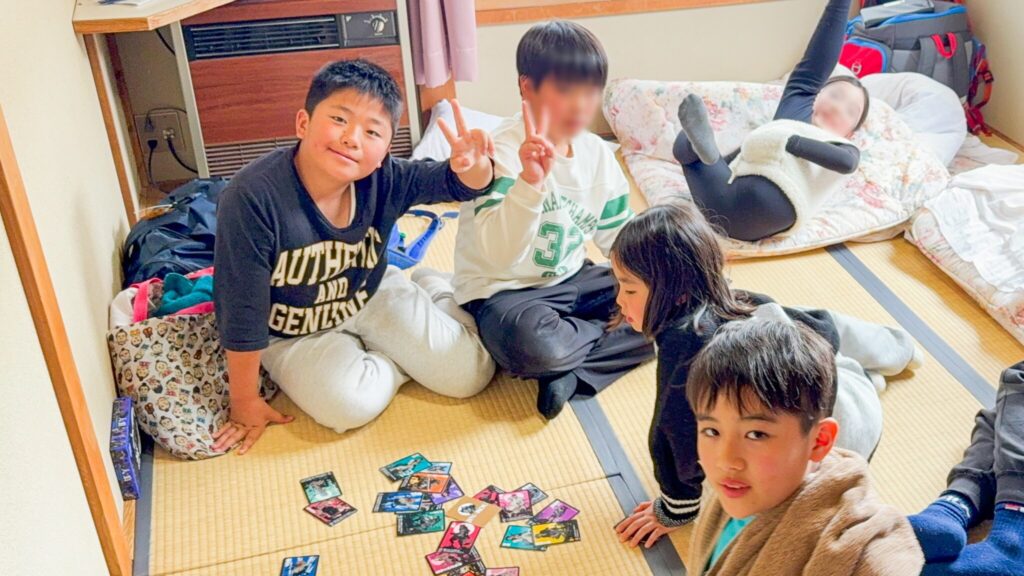 午後からは宿舎に戻り、お部屋でのんびりと自由時間を過ごしました。カードゲームで盛り上がったり、みんなで一緒に絵を描いたり、宿舎のロビーに備えられていた漫画を見つけて読んだりと、それぞれがお友達と一緒に和やかな時間を過ごします。