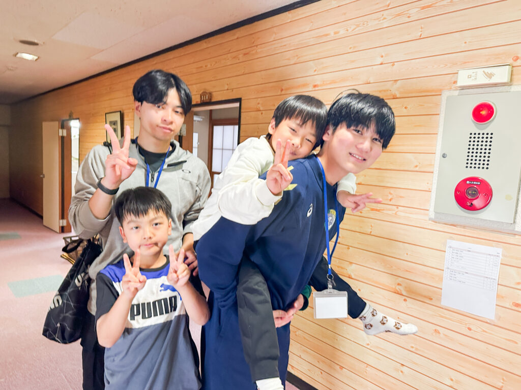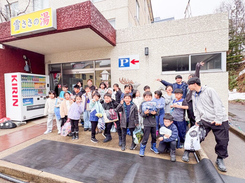 夕方には、昨日と同様に温泉へと向かいました。脱衣所の使い方や入浴時のルールを改めてリーダーから教わり、思わず大きな声が出てしまいそうになる際には「他のお客さんもいるよ」と子どもたち同士でも声を掛け合って、公共の場でのマナーを立派に守ることができました。