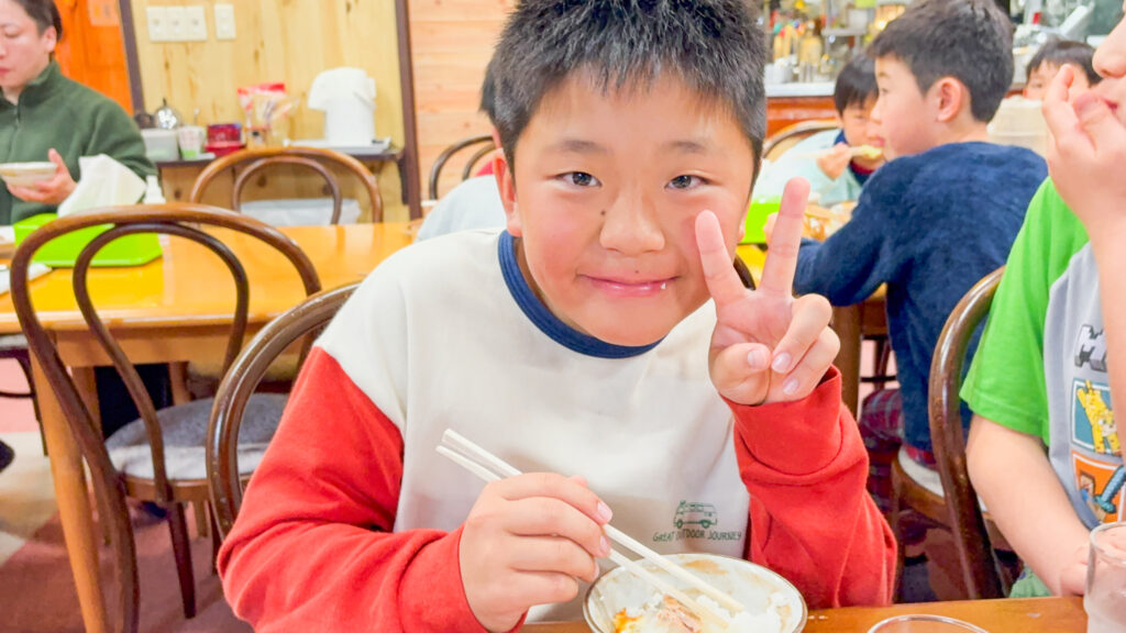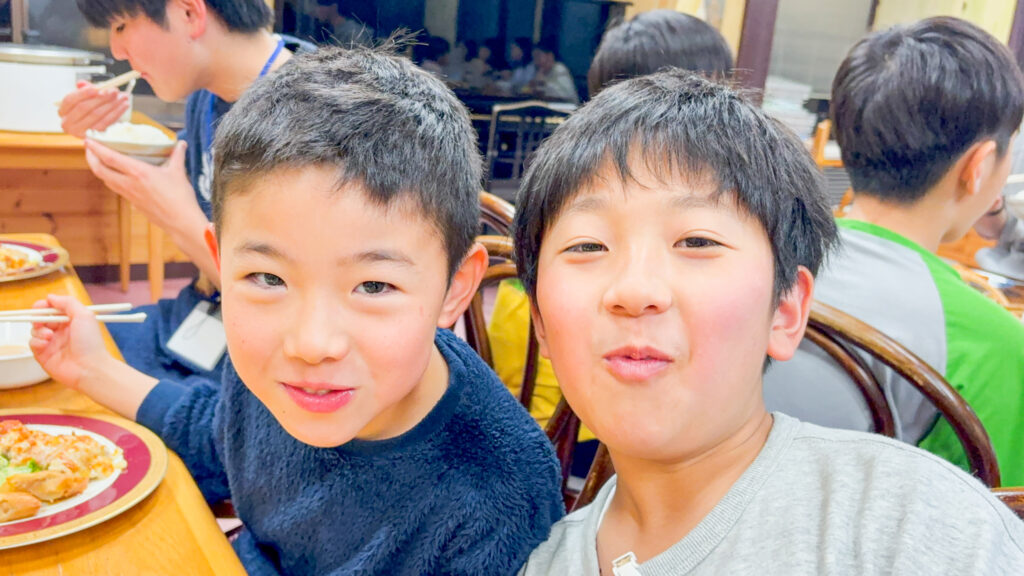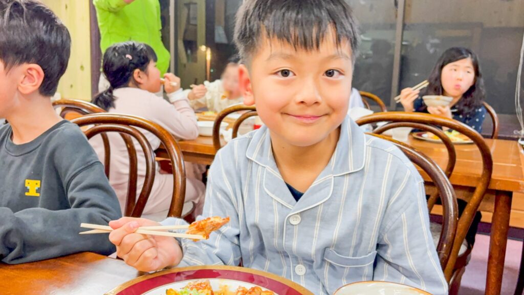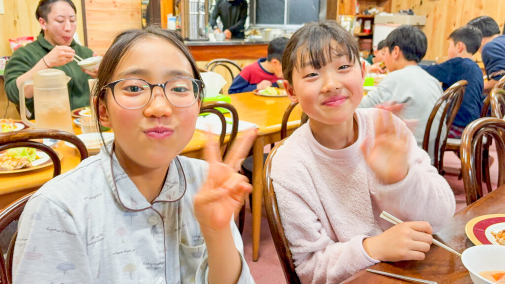夜は、美味しい夕食をたくさんおかわりして明日のスキーに向けてしっかりとエネルギー補給。「明日は絶対にスキーがしたい!」と、目を輝かせる子ども達の姿がありました。明日の晴天とゲレンデでの滑走を願いながら、子どもたちはぐっすりと眠りにつきました。